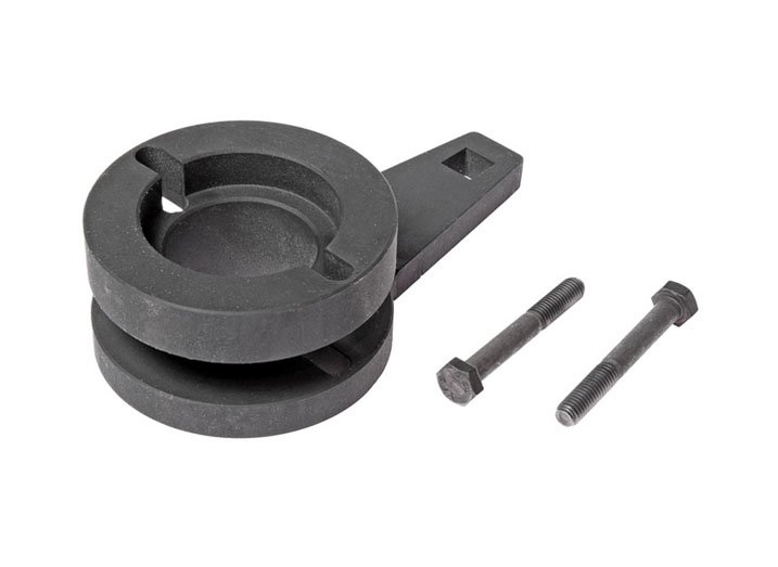 Фиксатор шкива коленвала (TOYOTA, LEXUS). Инструмент предназначен для удерживания шкива коленвала от проворачивания при вкручивании/откручивании центрального болта. Для затягивания шкива коленвала применяются 2 болта (M8x1.25). Для работы рекомендуется применять ключ 1/2". Применение: Тойота (Toyota), Лексус (Lexus).